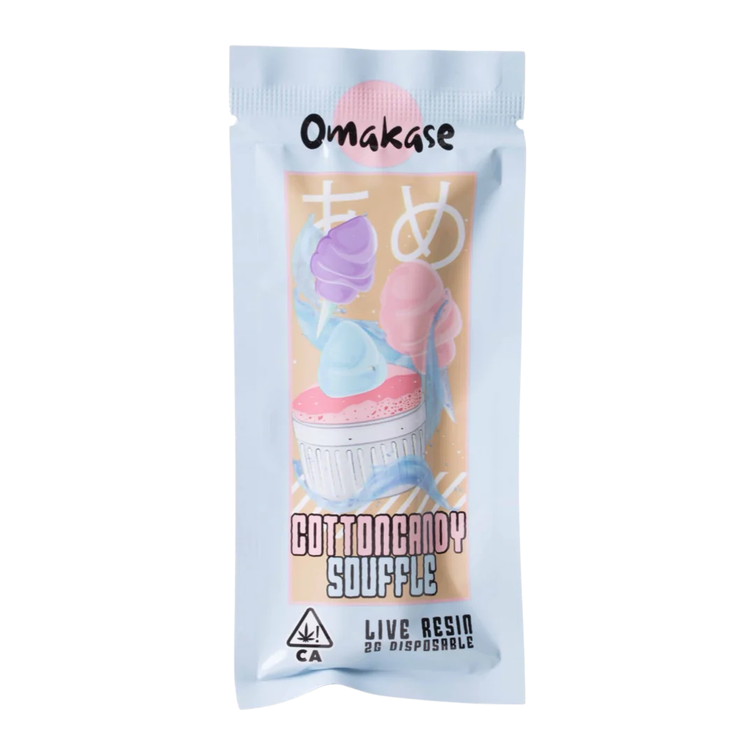 The Omakase 2 Gram Live Resin Disposable in Cotton Candy Souffle combines premium live resin, flavorful taste, and effortless usability. Its potent effects, rich vapor, and convenient design make it a standout choice in the cannabis disposable market. For anyone seeking a sweet, satisfying, and portable cannabis experience, this device delivers consistently.
